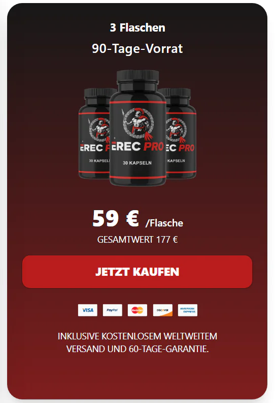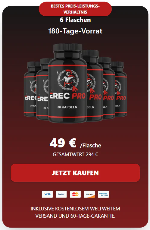Für die beste Erfahrung wählen viele einen 3- bis 6-Monatsvorrat, um die konsequente Anwendung sicherzustellen und die Vorteile von ErecPro vollständig zu erleben.