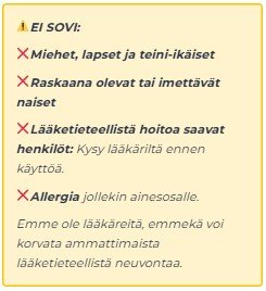 Tuki, ei korvike: Femona ei korvaa tasapainoista ruokavaliota tai lääketieteellistä neuvontaa. Se on suunniteltu täydentämään terveellisiä elämäntapoja, ei toimimaan yksinään.
